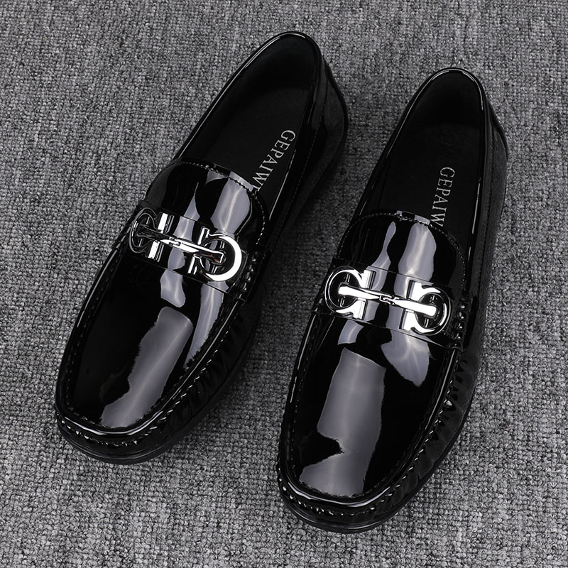 亮皮豆豆鞋 时尚 韩版 2025春季 真皮百搭漆皮潮鞋 男士 懒人驾车鞋 新款