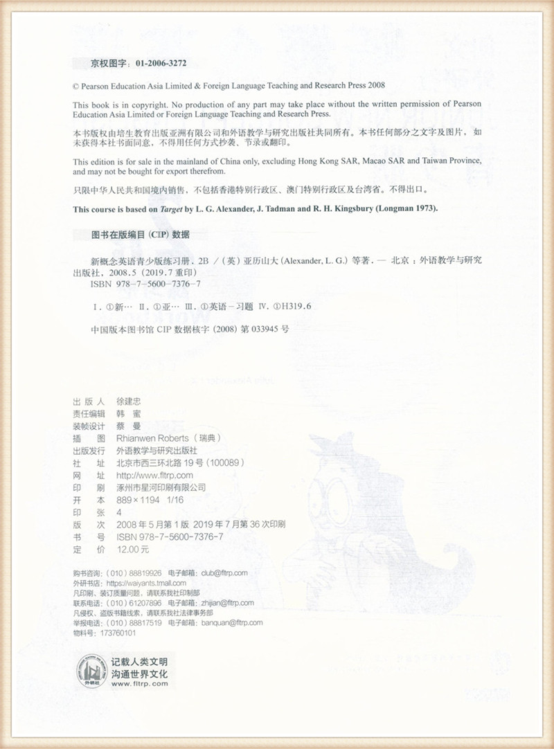 与2B学生用书配套使用 社 朗文.外研社 外语教学与研究出版 家庭作业 课堂练习 练习册 新概念英语青少版 现货 正版