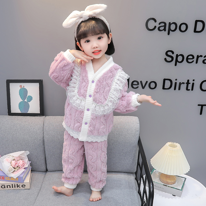 女款 家居服套装 加厚大码 秋冬款 法兰绒男士 芬腾珊瑚绒情侣睡衣冬季