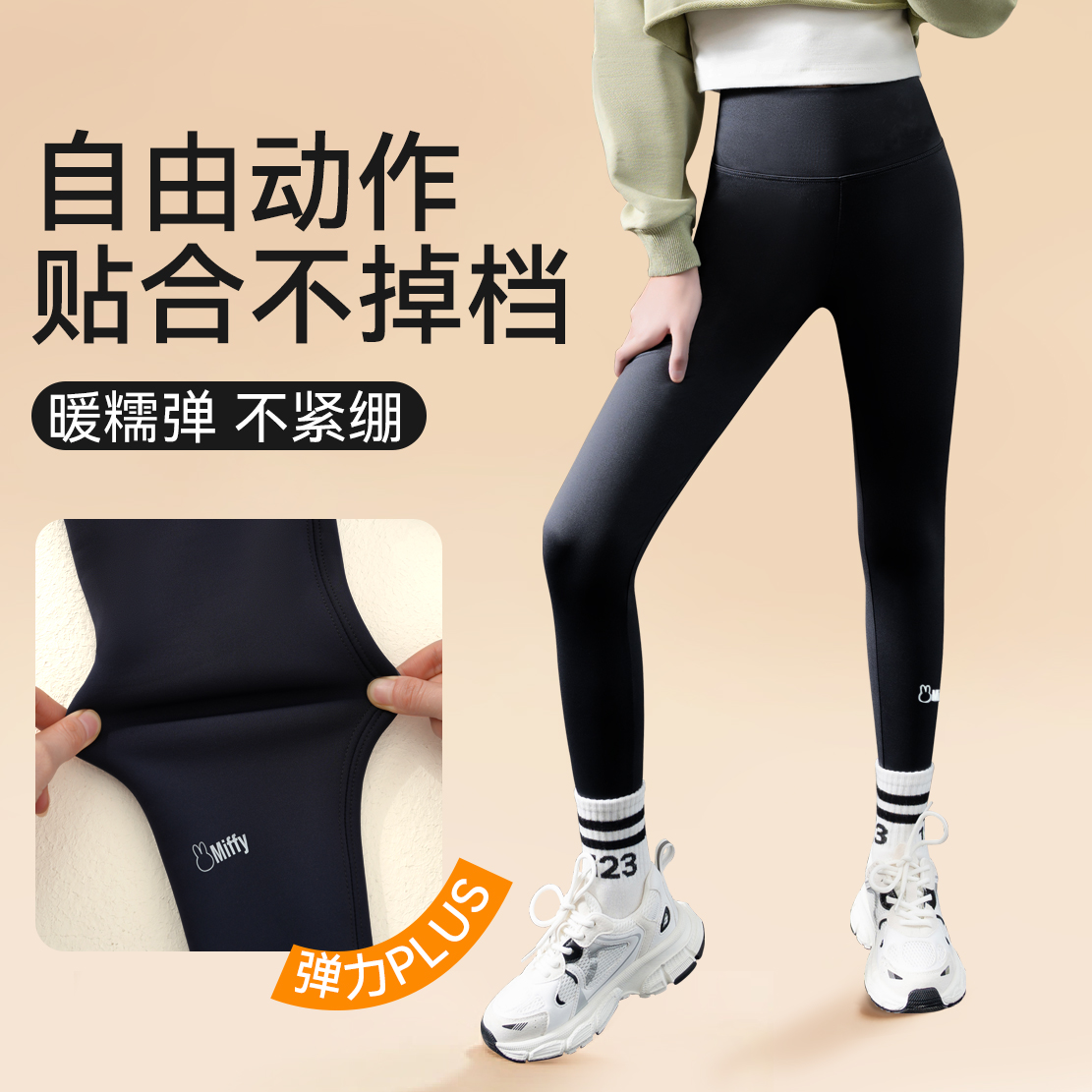 刘浩存同款 黑色加绒裤 蕉内热皮301 女裤 子 女士薄绒直筒休闲裤