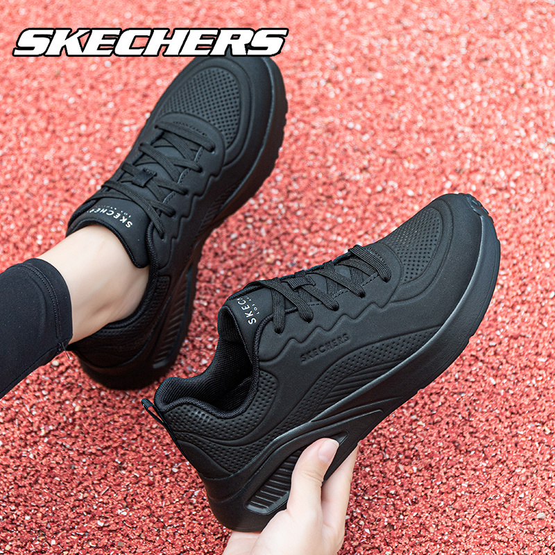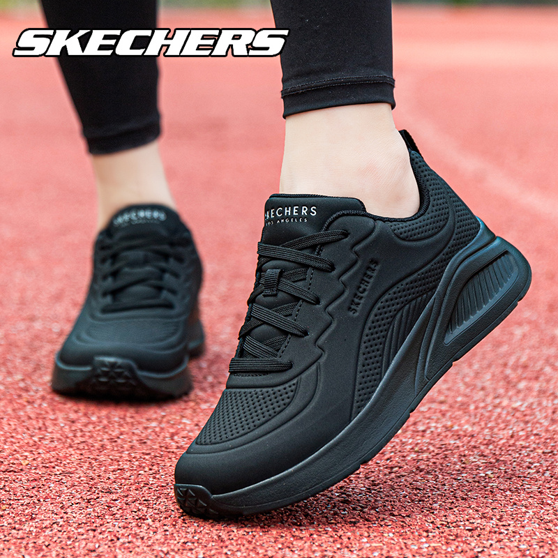缓震休闲运动鞋 Skechers斯凯奇黑色皮面跑步鞋 官方正品 冬季 女 女鞋