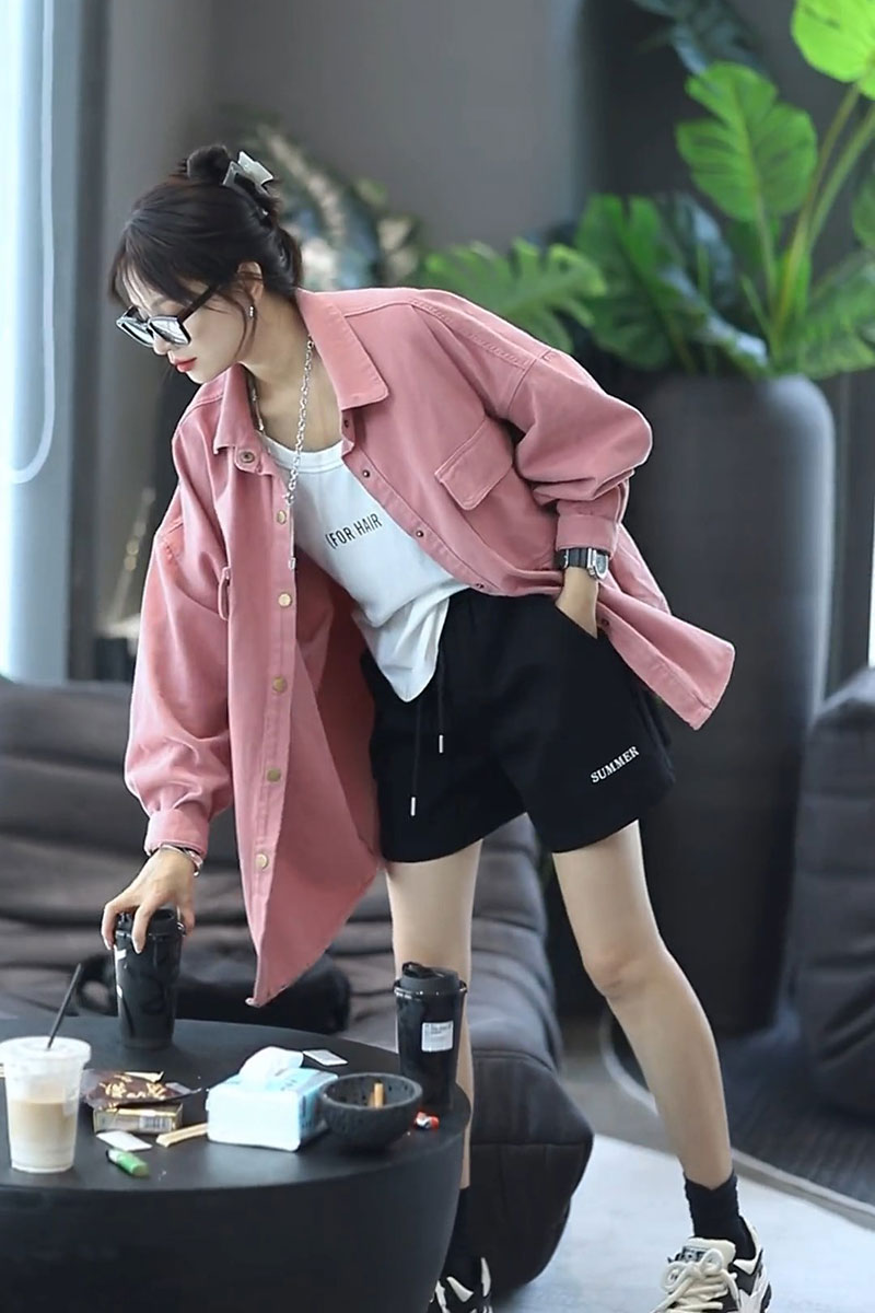 休闲宽松显瘦中长款 春秋2025新款 上衣 外套女薄款 复古港风牛仔衬衫