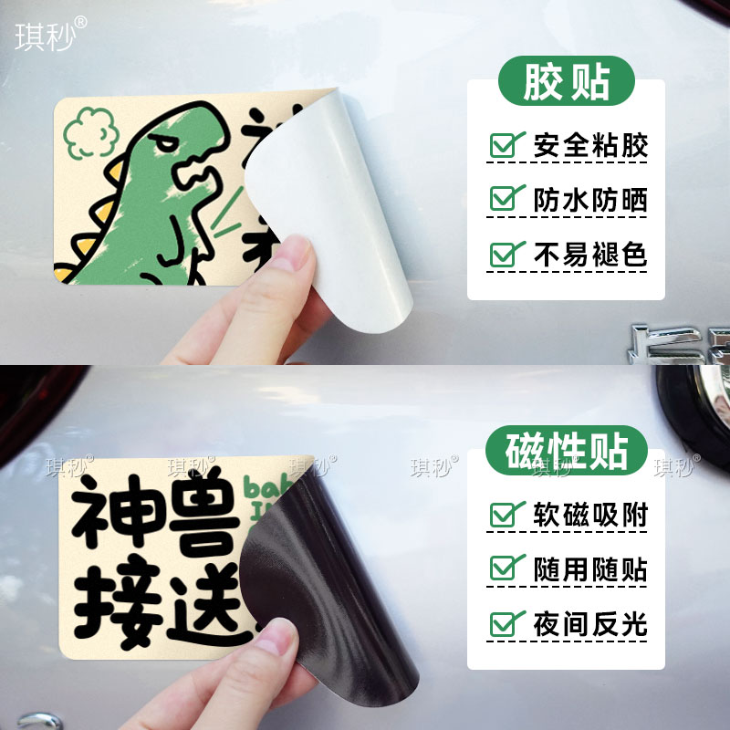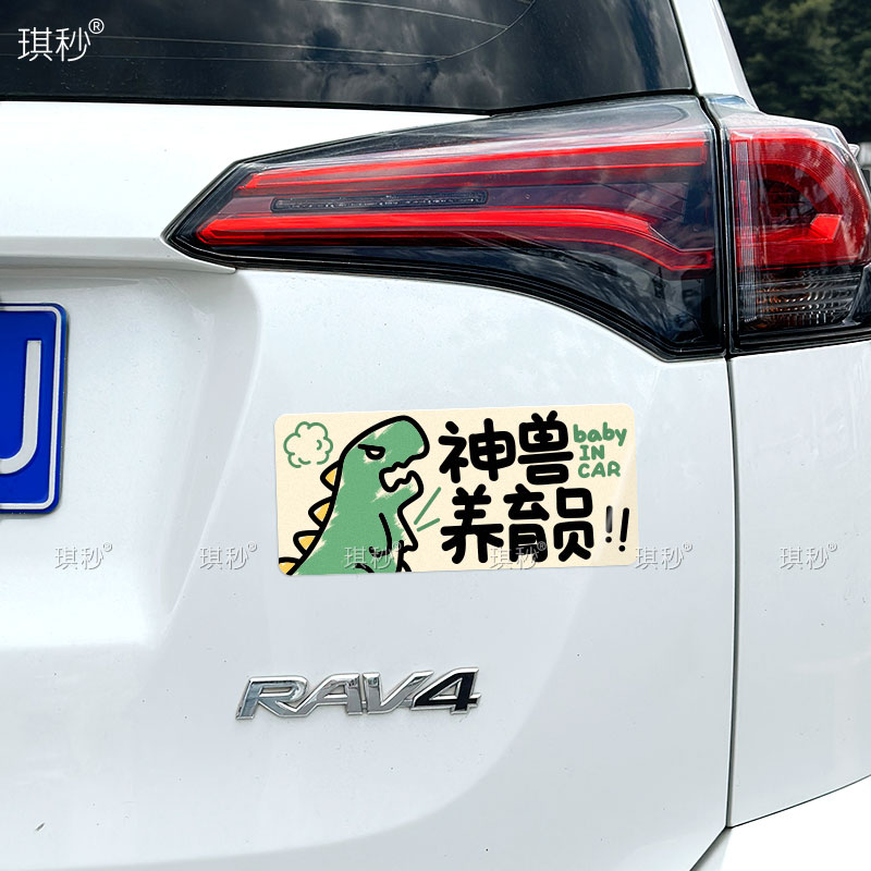 神兽养育员汽车贴纸创意车内有宝宝baby incar磁性反光贴电动车贴