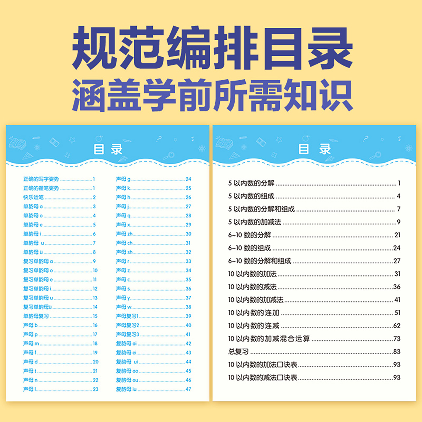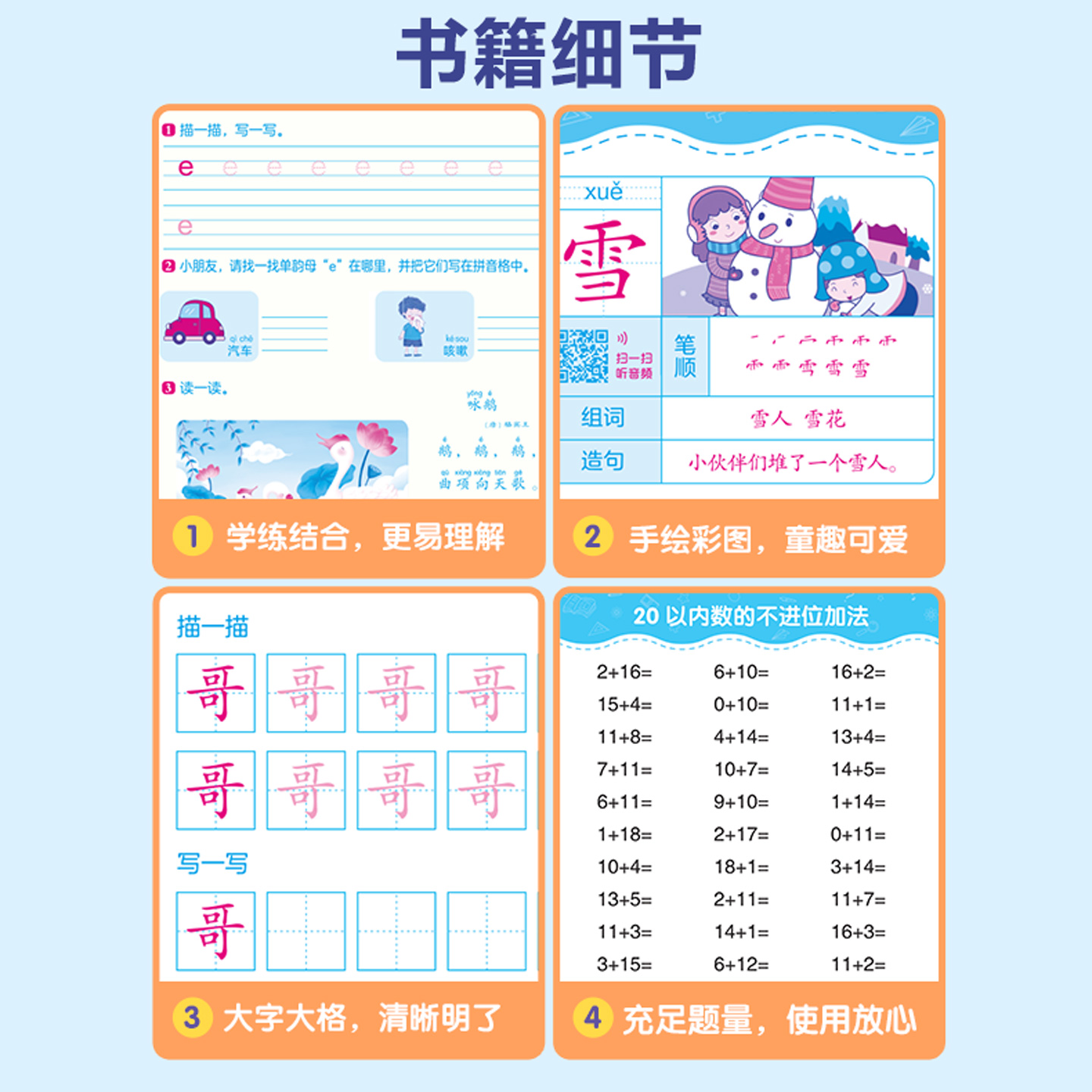 100以内 加减法分合 学前班升一年级练字帖数字拼音描红本幼儿园大班数学练习题10以内20 阳光宝贝幼小衔接天天练教材全套