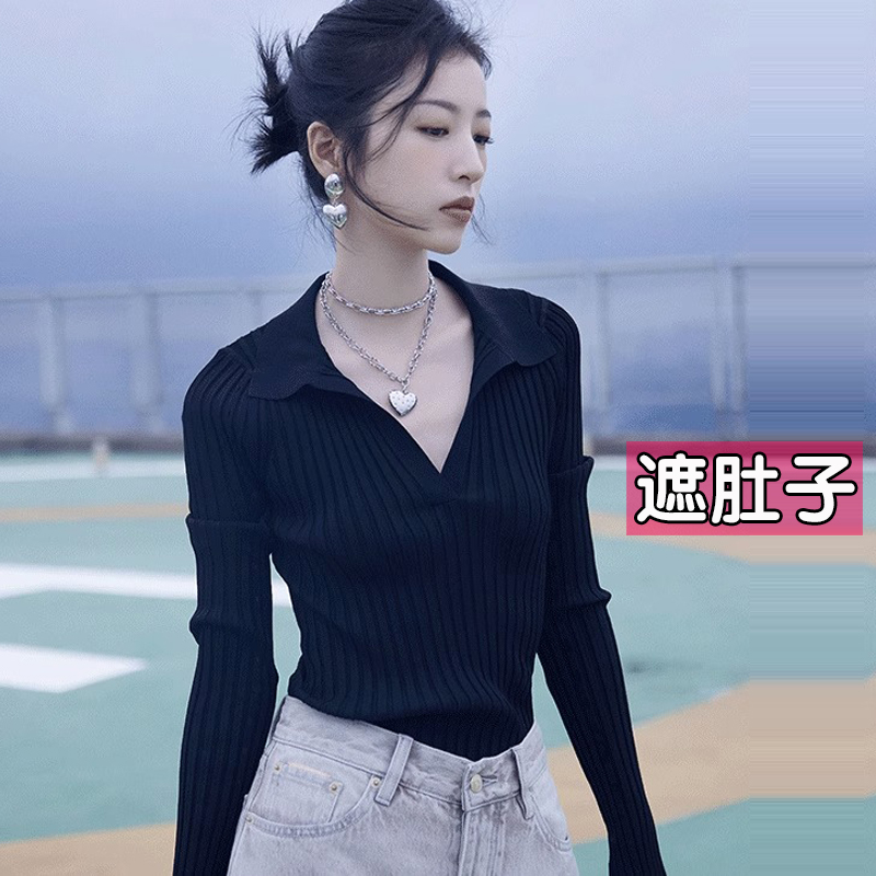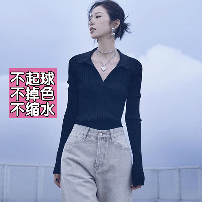 黑色打底衫 上衣女2025新款 polo领毛衣胖mm200斤春秋冬 针织衫 大码