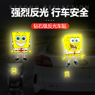 汽车反光贴卡通海绵宝宝电动车装 创意头盔反光贴遮划痕 饰贴纸个性