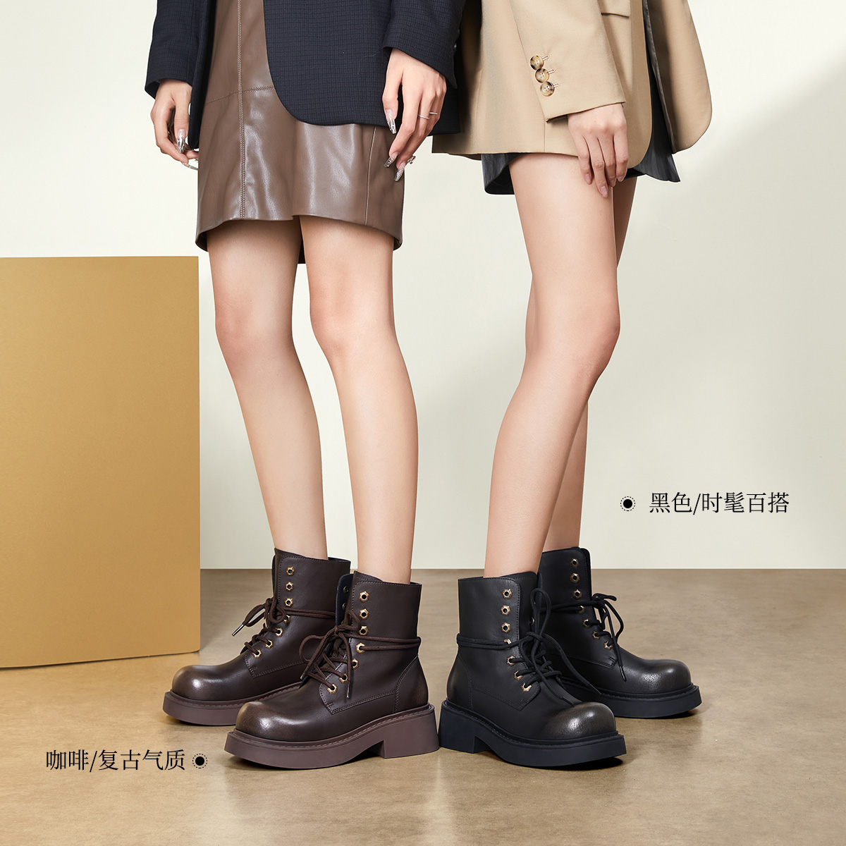 达芙妮棕色马丁靴女2025新款 美拉德靴子加绒德训短靴 拳击靴秋冬季