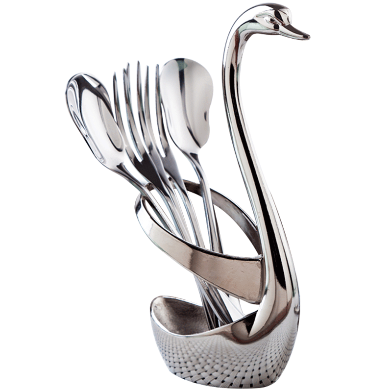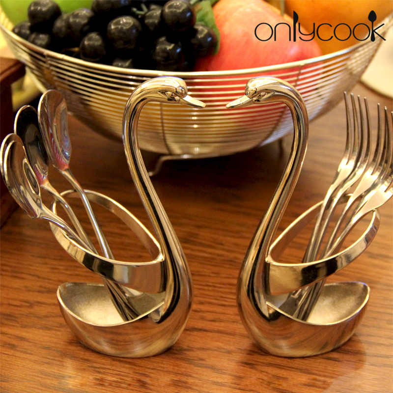 onlycook创意天鹅底座餐具欧式 咖啡勺组合 不锈钢水果叉子勺子套装