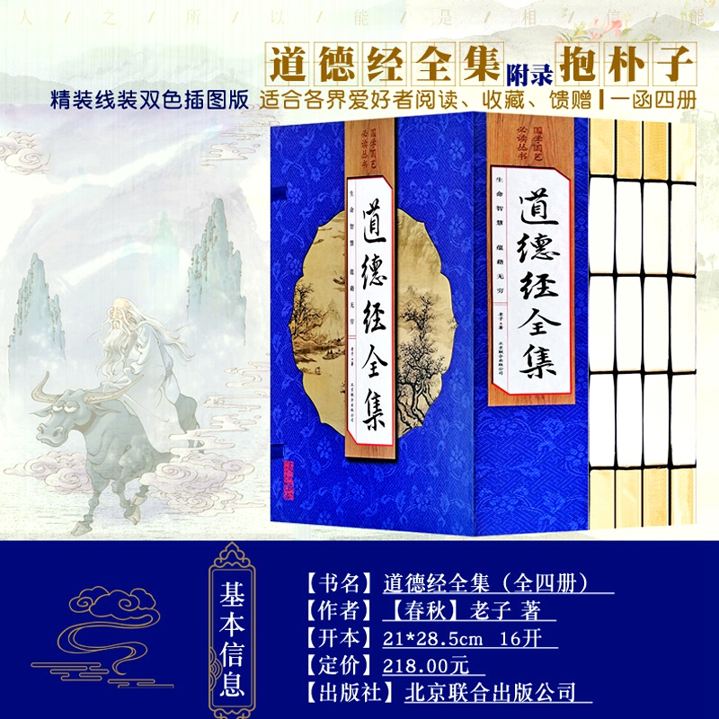 4册老子著原文精注全译全解全套老子道德经线装 版 书籍 国学典籍16开1函4册线装 中国哲学道家经典 道德经全集线装