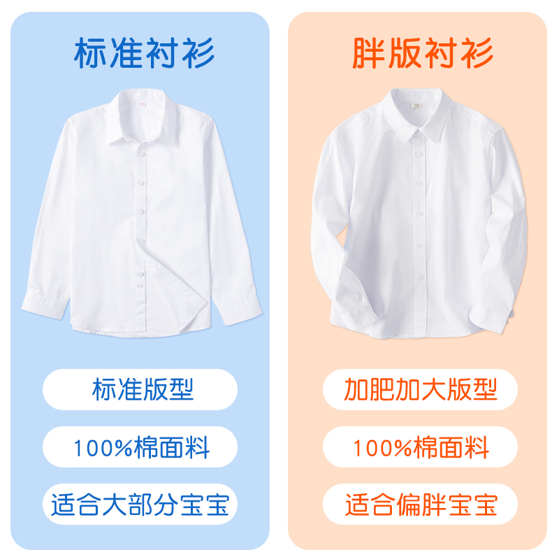 男童白衬衫 春秋纯棉胖儿童白色衬衣加肥大童小学生校服白衬衣 长袖