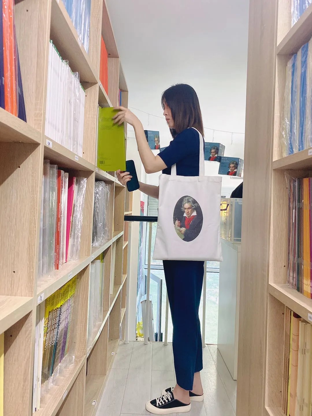 手提袋 音乐背包 40cm 纪念款 不含内袋 乐谱包 加厚白色帆布袋 贝多芬 书包