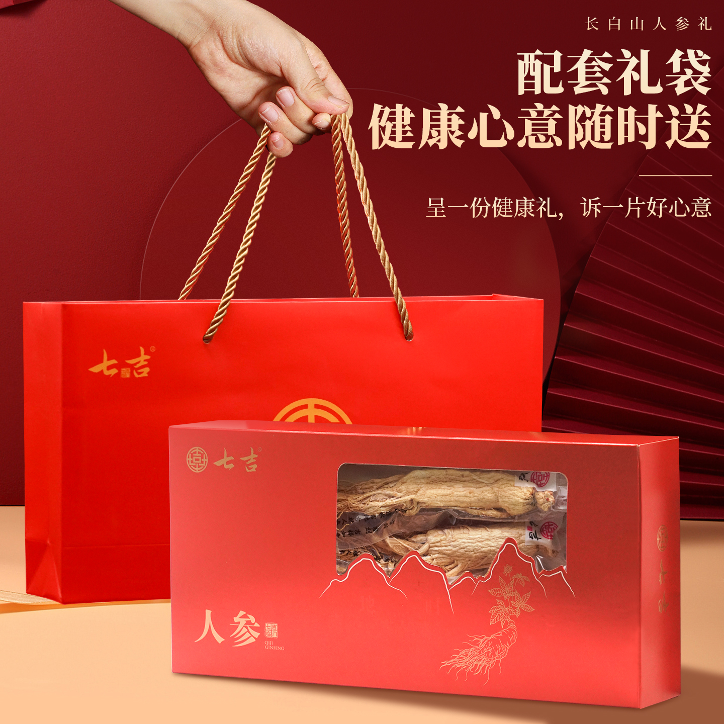 七吉高年人参独立装 长白山东北特产干参整支生晒参泡酒白参礼盒