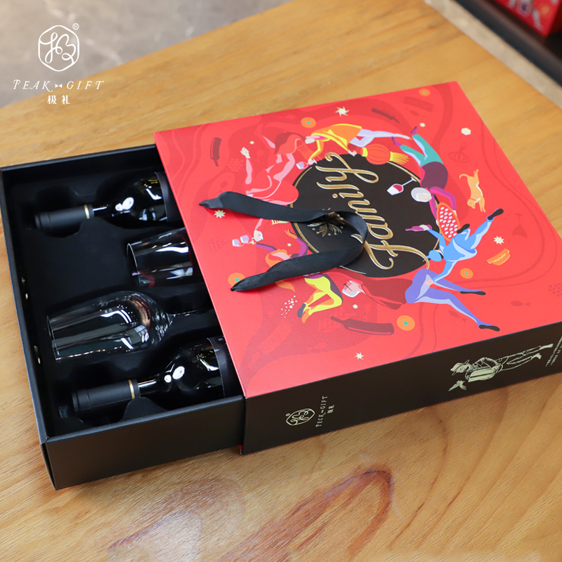 盒高档红酒盒子通用2支装 极礼红酒包装 礼盒双支带酒杯葡萄酒包装