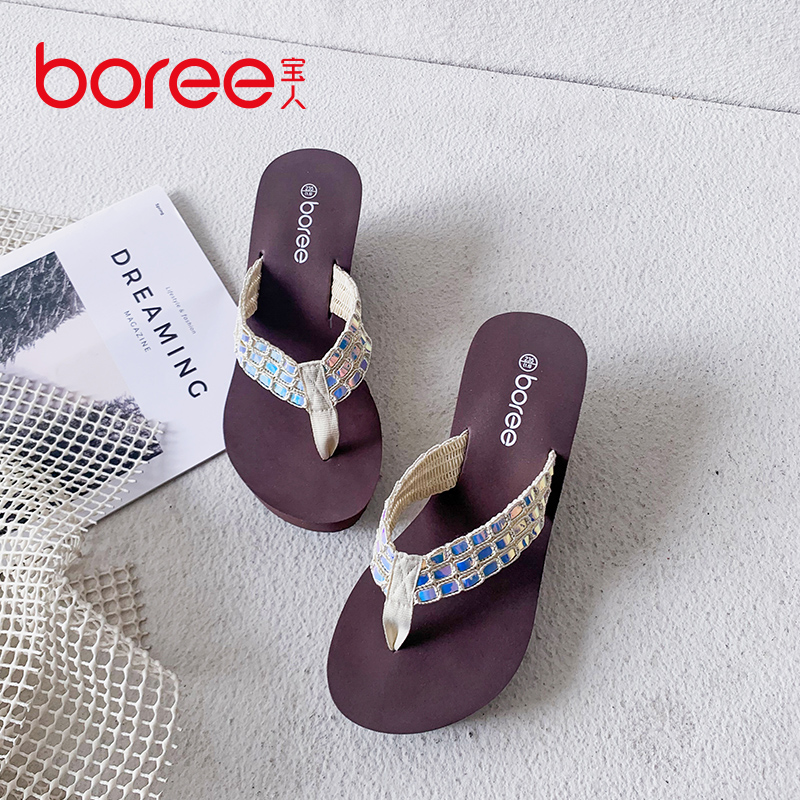 凉拖坡跟厚底超高跟人字拖海边沙滩外穿 女2024夏季 Boree 宝人拖鞋