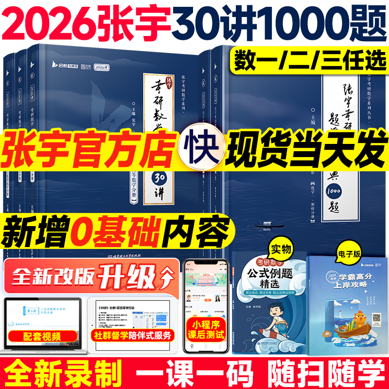 书课包 1000题三十讲一千题书课包全家桶26强化36讲数学一数二数三9讲18讲高数线代概率真题大全解网课 2027张宇考研数学基础30讲