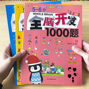 6岁全脑开发1000题幼儿益智书籍思维训练练习册宝宝左右脑开发儿童课堂早教闪卡全脑潜能开发教具全套大开本游戏书 全套3本