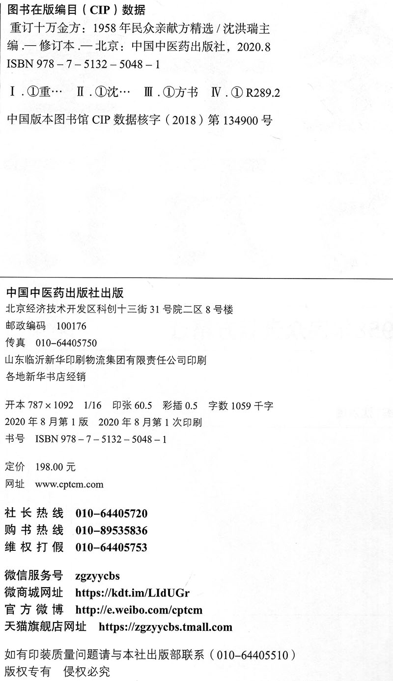 现货重订十万金方1958年民众亲献方精选修订版 社9787513250481 沈洪瑞中国中医药出版