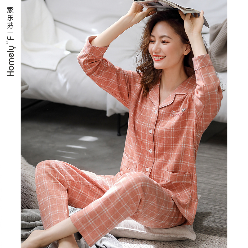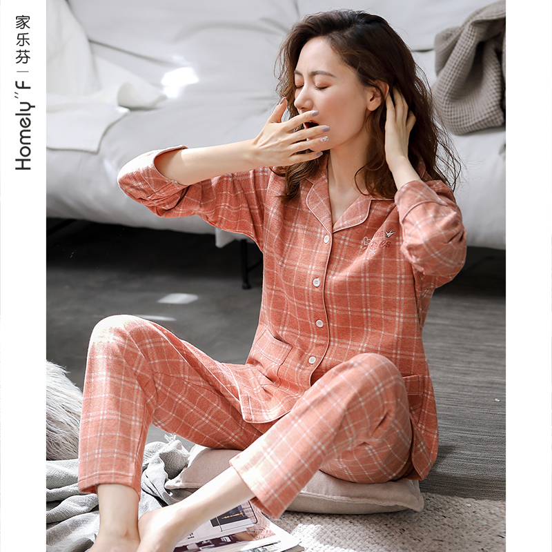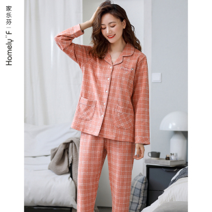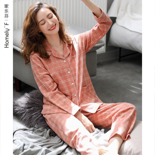 纯棉长袖 家居服秋冬季 薄款 睡衣女士春秋款 套装 秋装 加大码 秋季