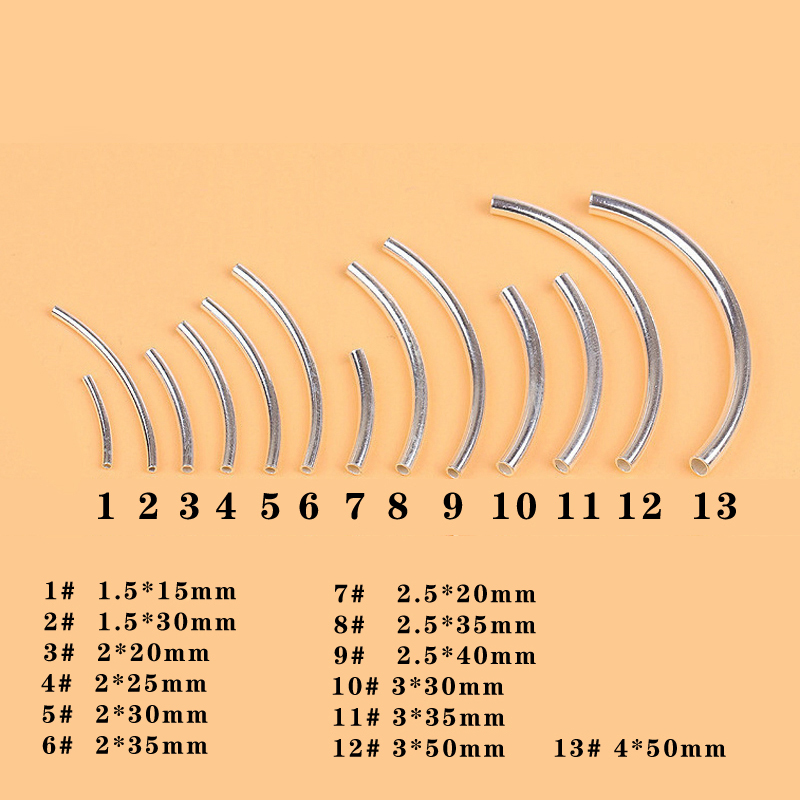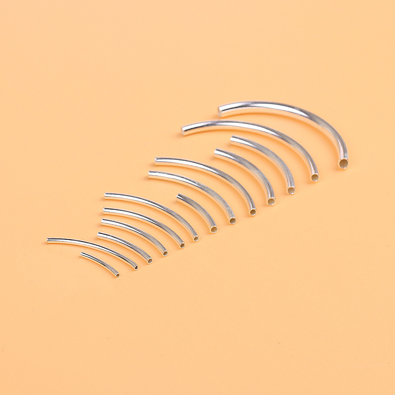 s925银素银弯管diy手工手串手链泰银银饰光面弯管空心圆管银配饰