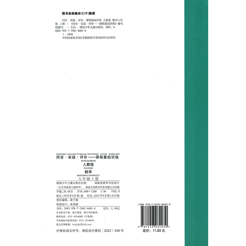 现货数学教辅书 RJ初二2上册数学同步课程基础训练八8年级上册数学基础训练8年级上册数学同步辅导书含答案正版 2025全新正版 人教版