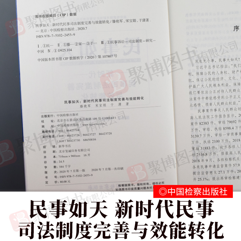 宋宝娟 滕艳军 于潇 中国检察出版 9787510224539 民事如天 社 新时代民事司法制度完善与效能转化