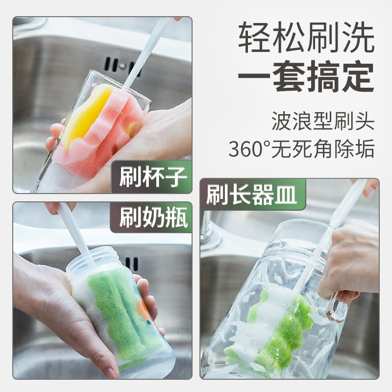 杯刷清洁水杯长柄刷无死角水瓶清洁刷洗奶瓶刷去污海绵小刷子神器