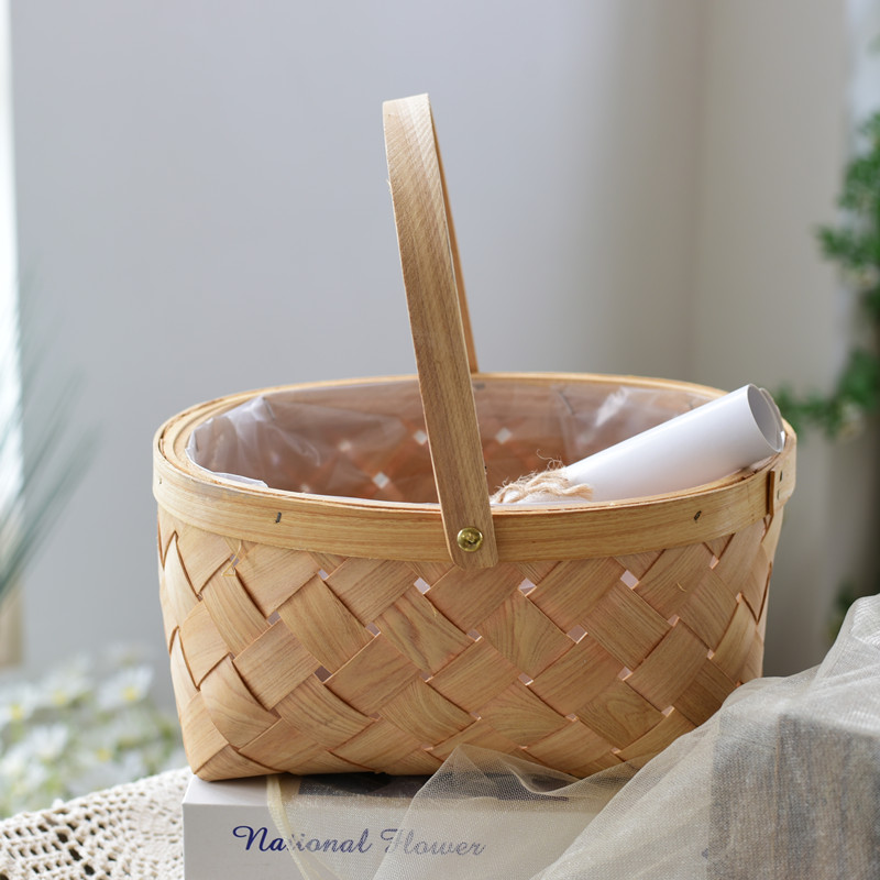 中秋花篮手工编织水果鲜花包装 小号手提篮子藤编竹编花束插花材料