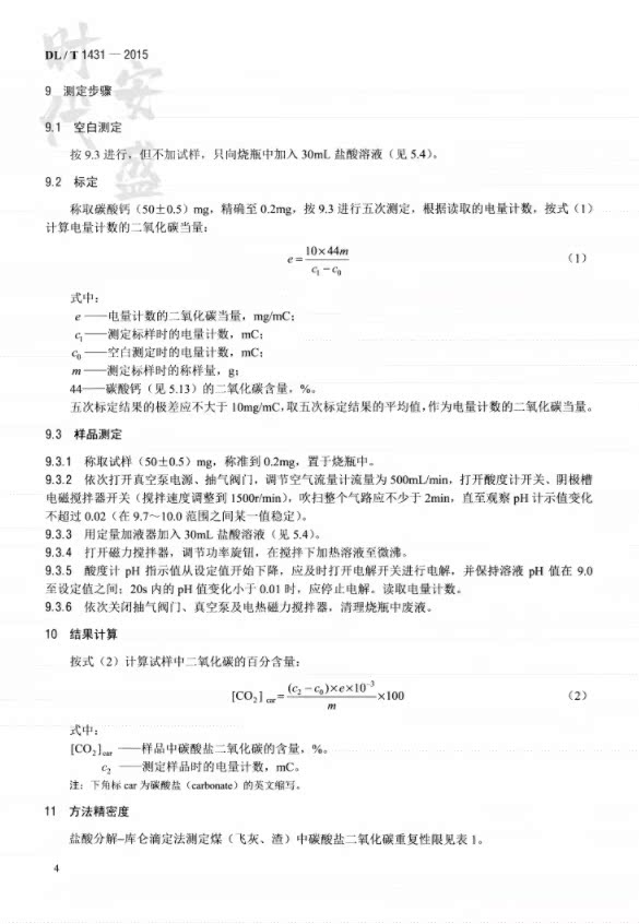 库仑滴定法 盐酸分解 飞灰 正版 现货 渣 1431 测定 2015 中碳酸盐二氧化碳 煤