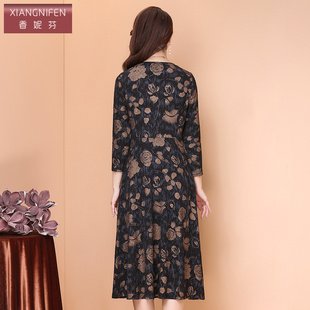 香妮芬贵夫人连衣裙减龄气质2025秋季 高端洋气弹力金花大摆裙 新款