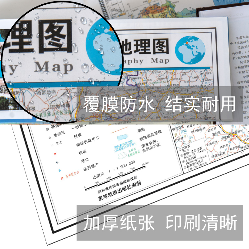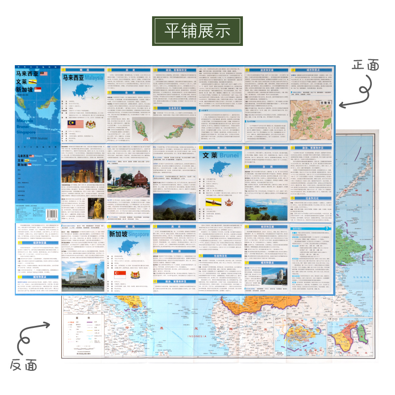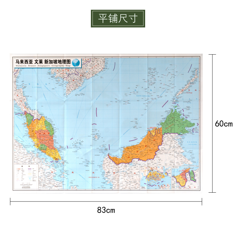 马来西亚 折叠便携袋装 双面覆膜防水 人文历史 新版 世界分国地理图 城市景点 新加坡 文莱 60cm 政区图 约84 地理概况