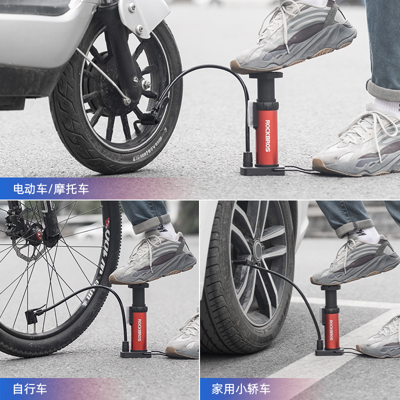 洛克兄弟脚踩打气筒自行车高压便携电动车电瓶车摩托车家用充气泵