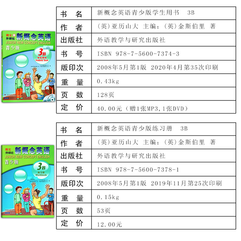 mp3新概念中学生英语提高篇 朗文外研社新概念英语青少版 含DVD 练习册 青少年儿童英语培训教材书籍英语学习 3B学生用书