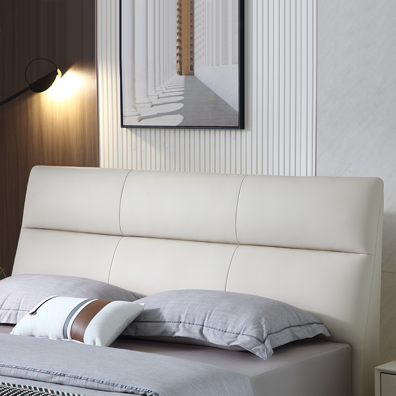 朗乐福 现代简约头层真皮双人皮艺床双人床1.8米1.5m主卧家具格林