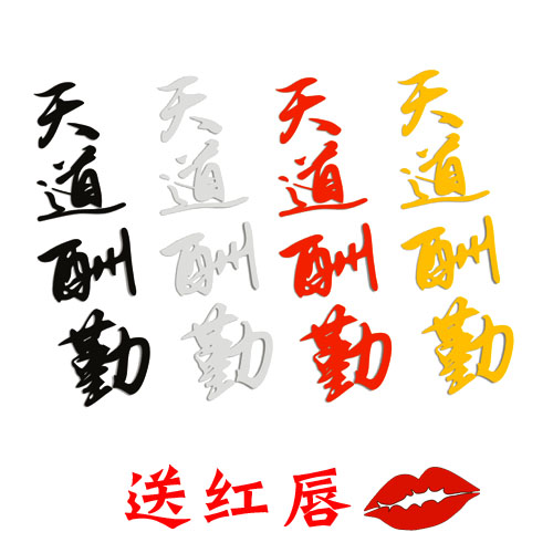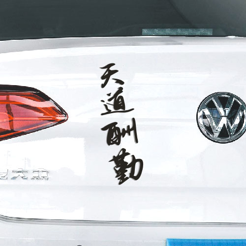 天道酬勤励志文字车贴 车尾贴划痕汽车贴纸后玻璃贴 努力拼搏个性