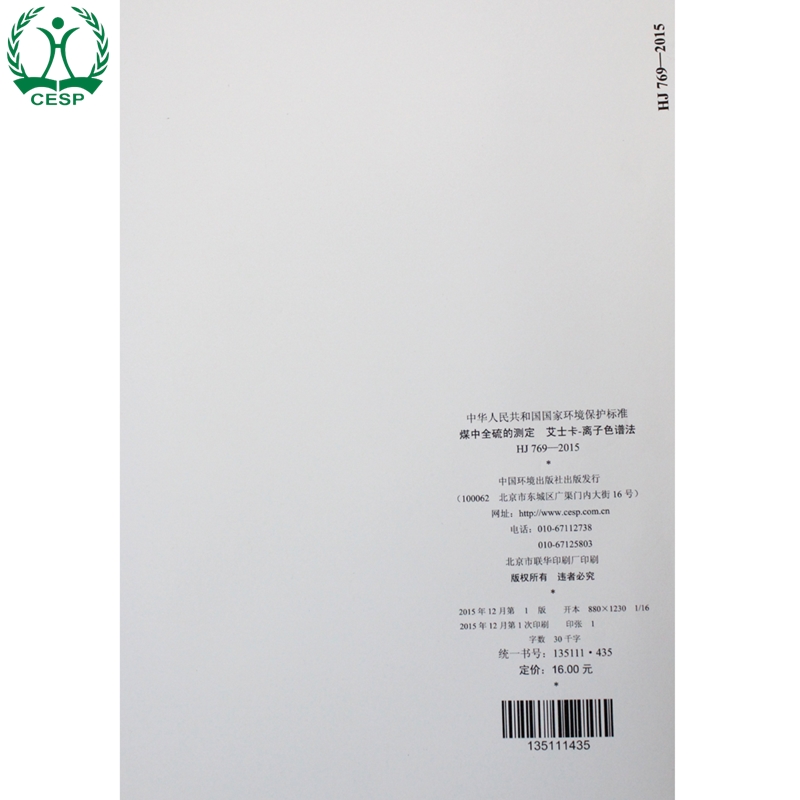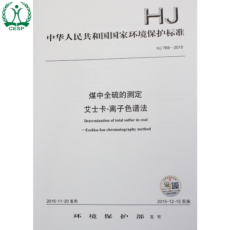 环境保护 煤中全硫 2015 艾士卡 中国环境出版 国标 769 国家标准 离子色谱法 135111435 社 测定 官方旗舰店