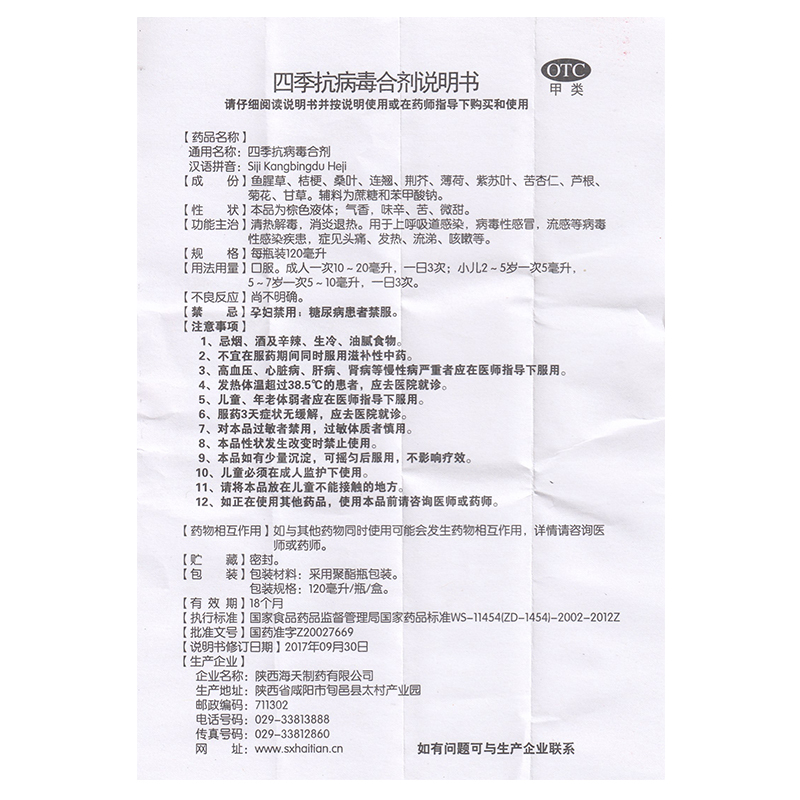 抗病毒合剂口服液发热流感抗病毒感冒头疼流涕咳嗽药 海天四季 包邮