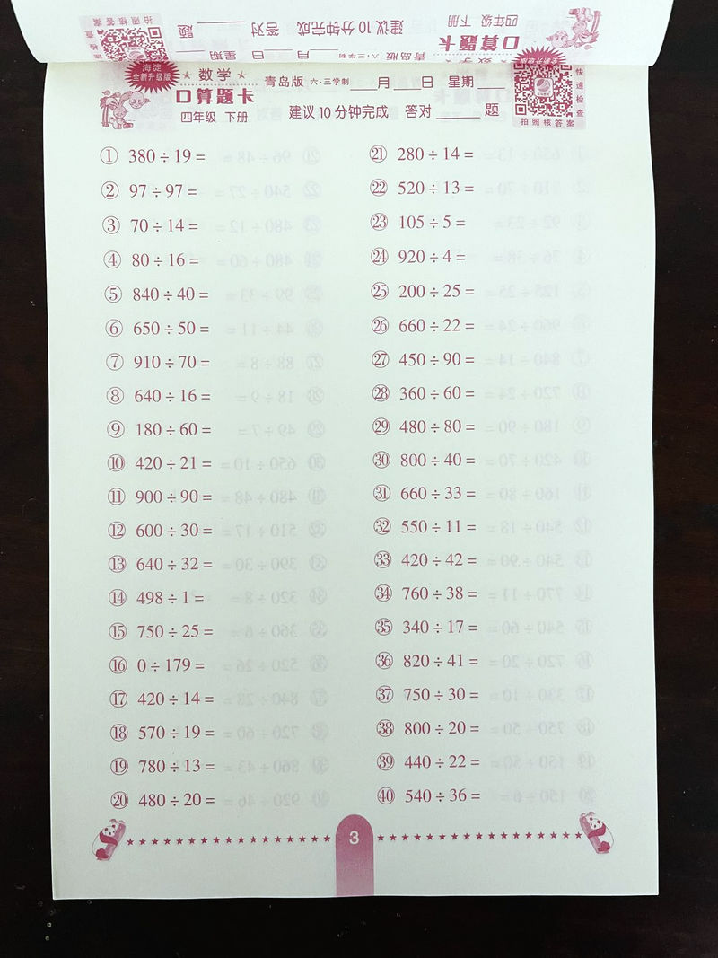 六三学制 青岛版 算速算巧算提高运算能力强化速度闫飞主编 四年级下册 2024数学口算题卡
