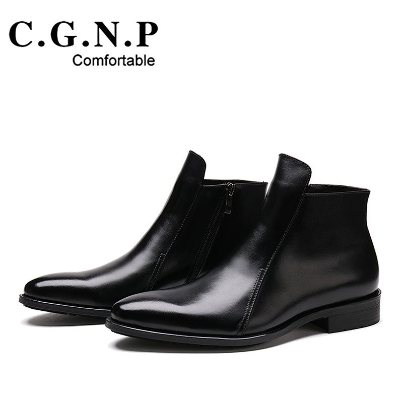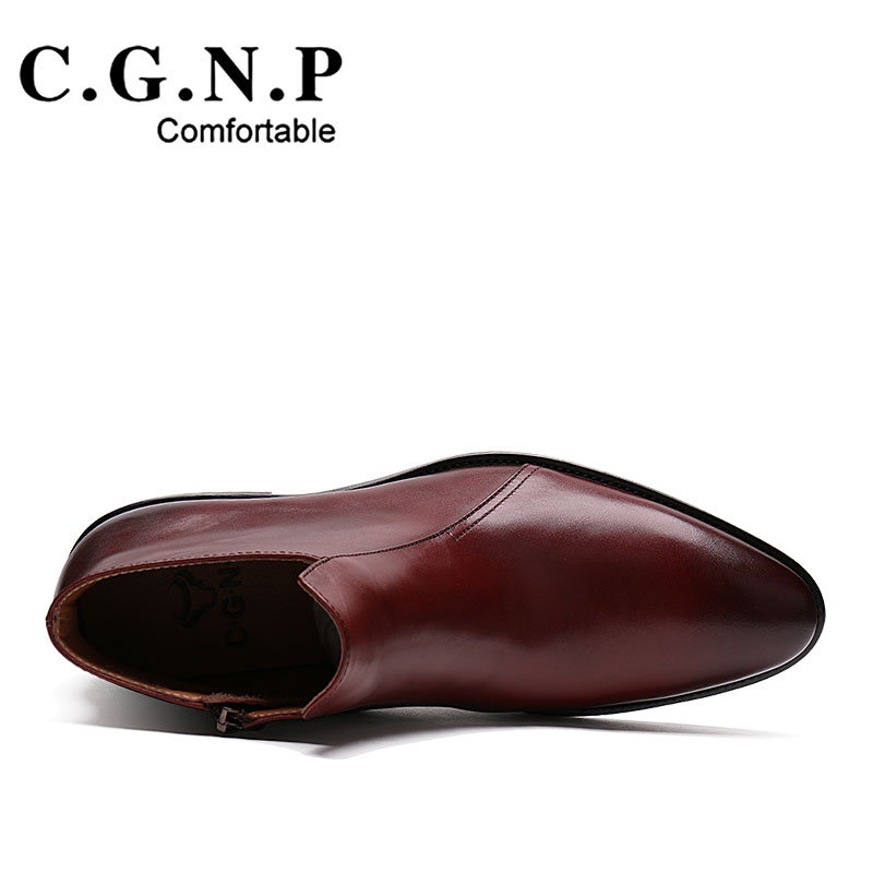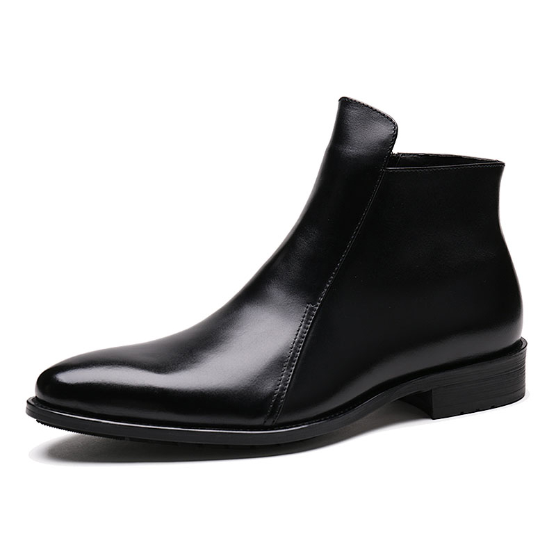 男尖头英伦加绒马丁靴真皮靴子男靴潮流短靴 休闲高帮皮鞋 冬季 男士