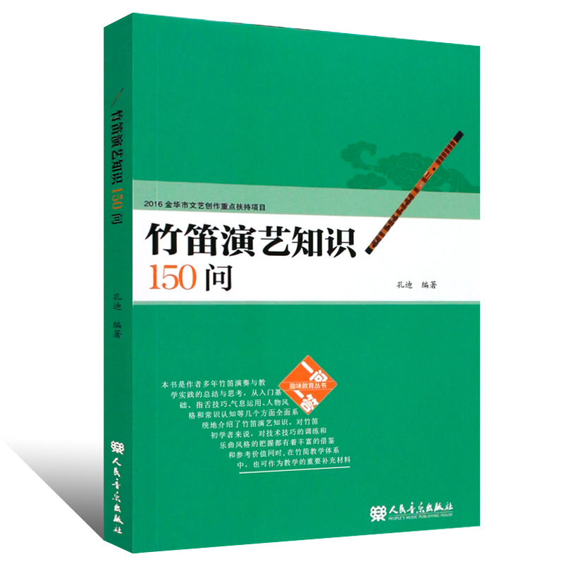 竹笛演奏教学基础知识教材教程书籍 正版 社 人民音乐出版 笛子入门基础演奏技巧气息运用教程书 竹笛演艺知识150问