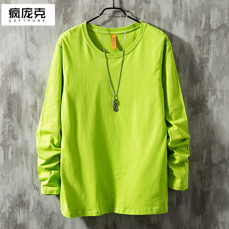 潮流宽松内搭上衣服纯色秋衣TEE 韩版 荧光色长袖 t恤男女休闲打底衫