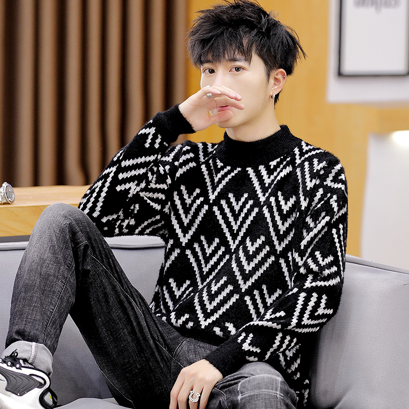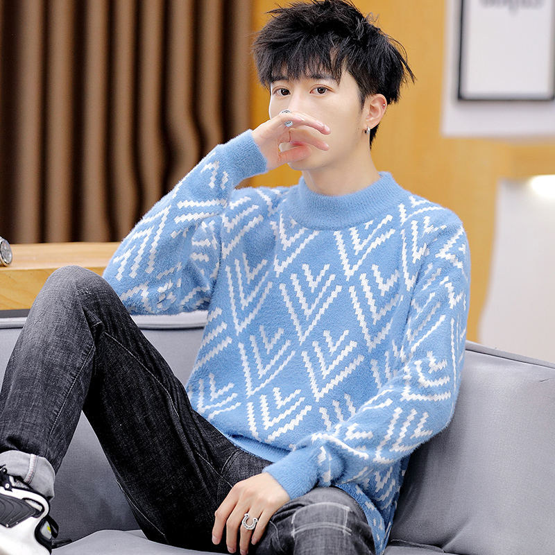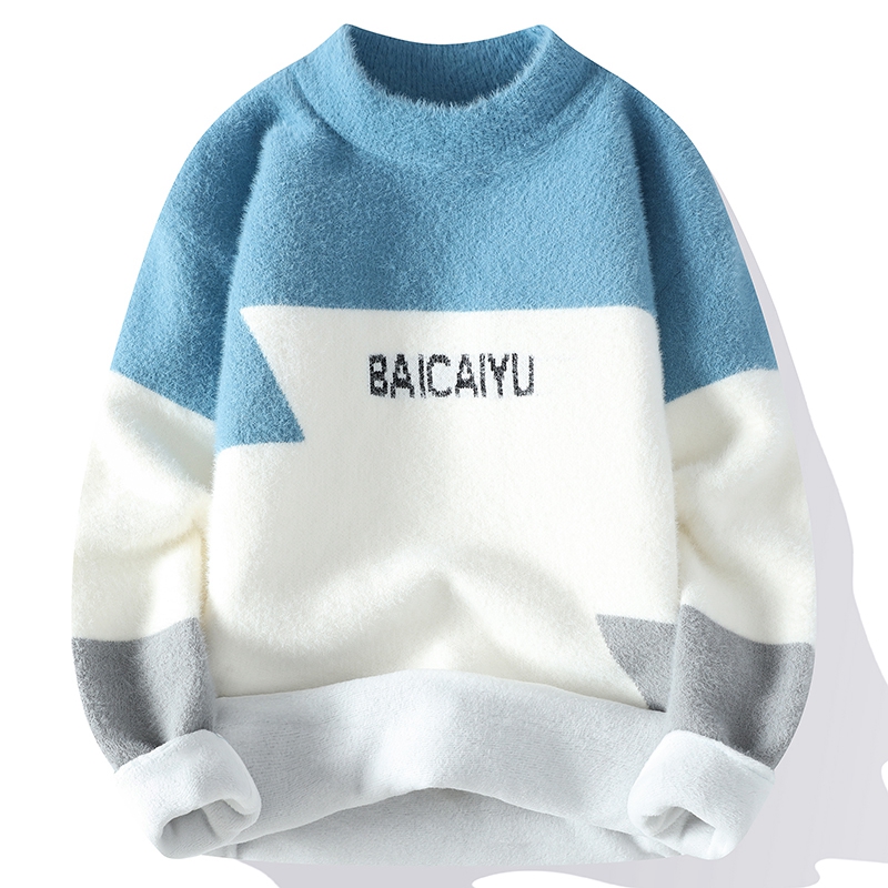 学生内搭打底线衣 针织衫 水貂绒毛衣男半高领秋冬季 加绒保暖加厚款