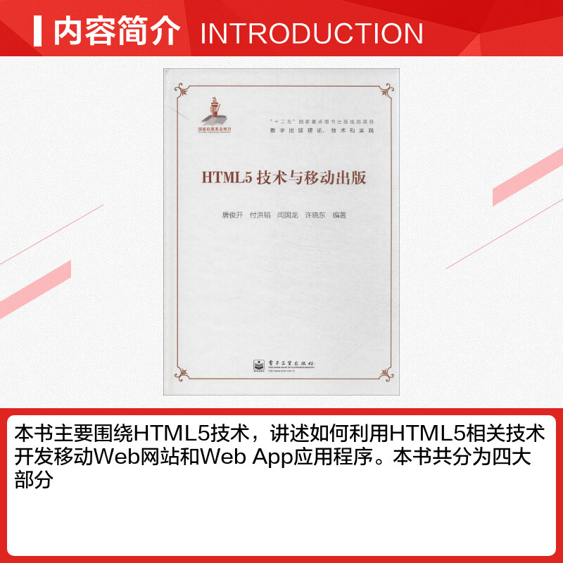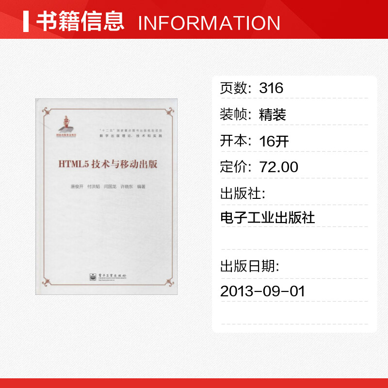 专业科技 社 等 电子工业出版 图书籍 新华书店正版 新 程序设计 著 唐俊开 HTML5技术与移动出版