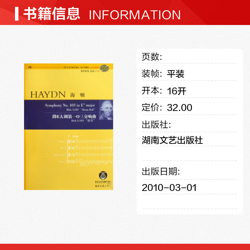 新华书店正版 降E大调第103交响曲HOB.I 奥 滚奏 路旦俊 艺术 图书籍 新 103 音乐 译者 社 湖南文艺出版 著作 海顿