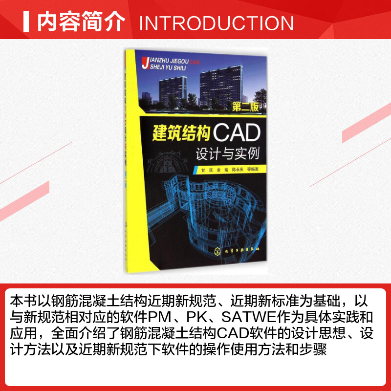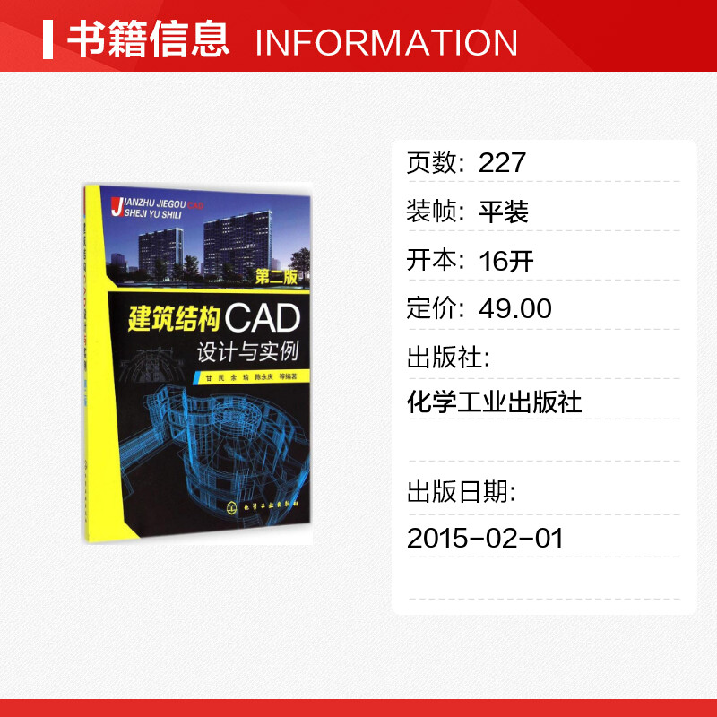 新 甘民 建筑 建筑结构CAD设计与实例第2版 专业科技 化学工业出版 编著 图书籍 等 社 著作 新华书店正版 水利