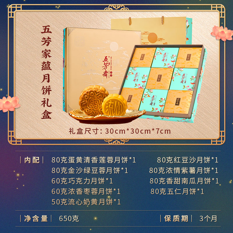 五芳斋月饼礼盒装 中秋节月饼 家蕴蛋黄莲蓉流心奶黄多口味团购广式