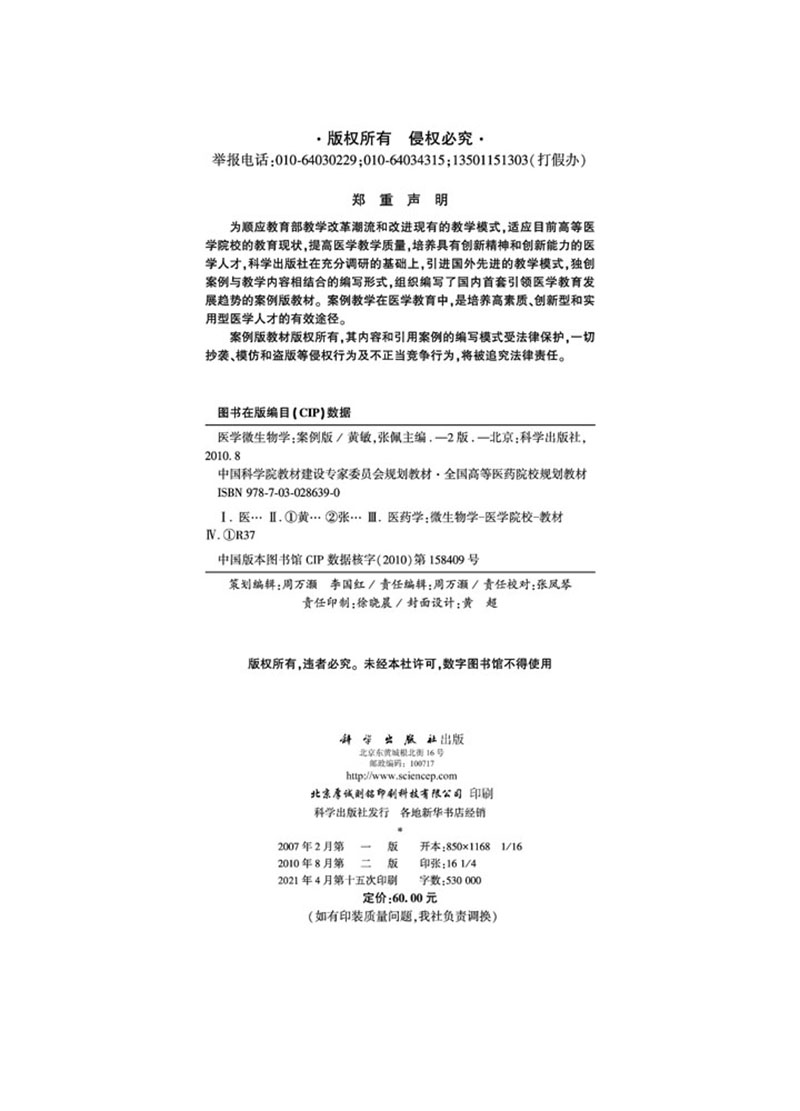 系列教材黄敏张佩主编科学出版 普通高等教育案例版 社9787030286390 第2版 现货医学微生物学案例版