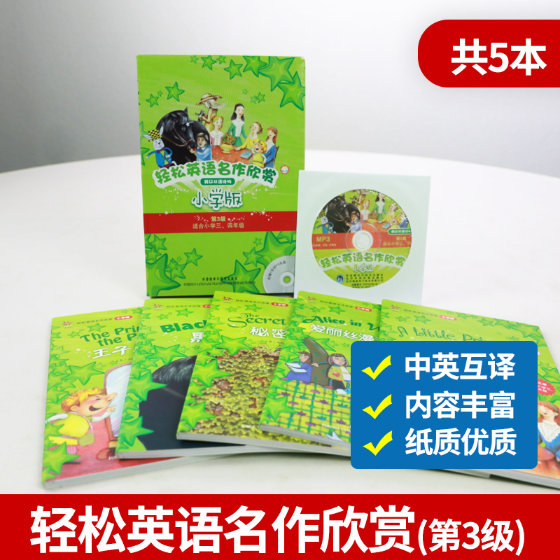 黑骏马等全5册 轻松英语名作欣赏小学版 含光盘 适合小学三3四4年级 外研社中英文英汉双语对照名著阅读英语学习分级读物 第三级3级