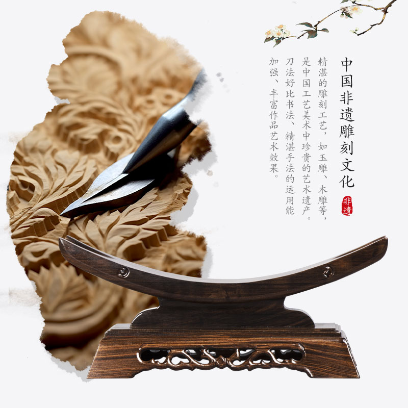 高档剑架剑托实木刀托刀架装 饰宝剑架子底座象牙摆件黑檀红木剑架