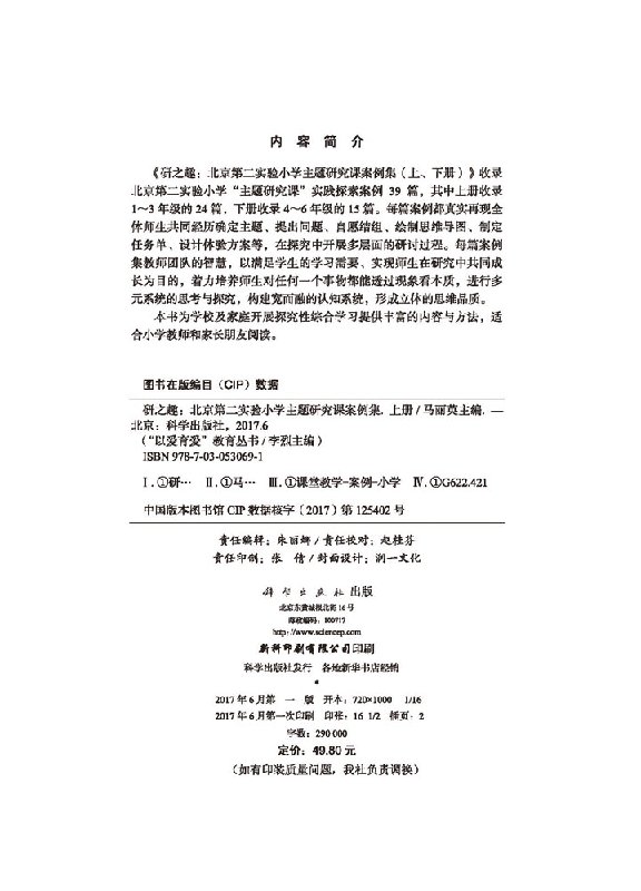 马丽英 以爱育爱 教育丛书 研之趣 科学出版 上册 9787030530691 社 北京第二实验小学主题研究课案例集