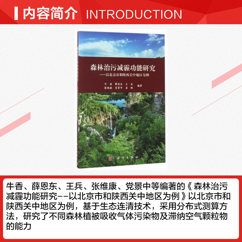 牛香 薛恩东 著作 以北京市和陕西关中地区为例 环境科学专业科技 党景中等 编者 张维康 森林治污减霾功能研究 王兵